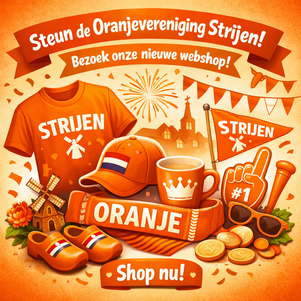 Het mooiste van alles? Met elke aankoop steun je direct de Oranjevereniging. Zo draag je niet alleen iets moois, maar help je ook mee om de gezellige evenementen en tradities in Strijen mogelijk te maken.